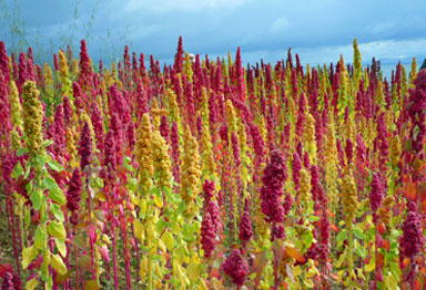 In most of the route we enjoy an excellent view, as the colorful fields of quinoa, a super important product of this zone.